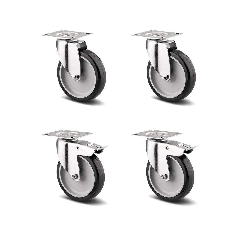 I et sæt får du fire hjul: 2 x drejelige hjul og 2 x hjul med bremser.