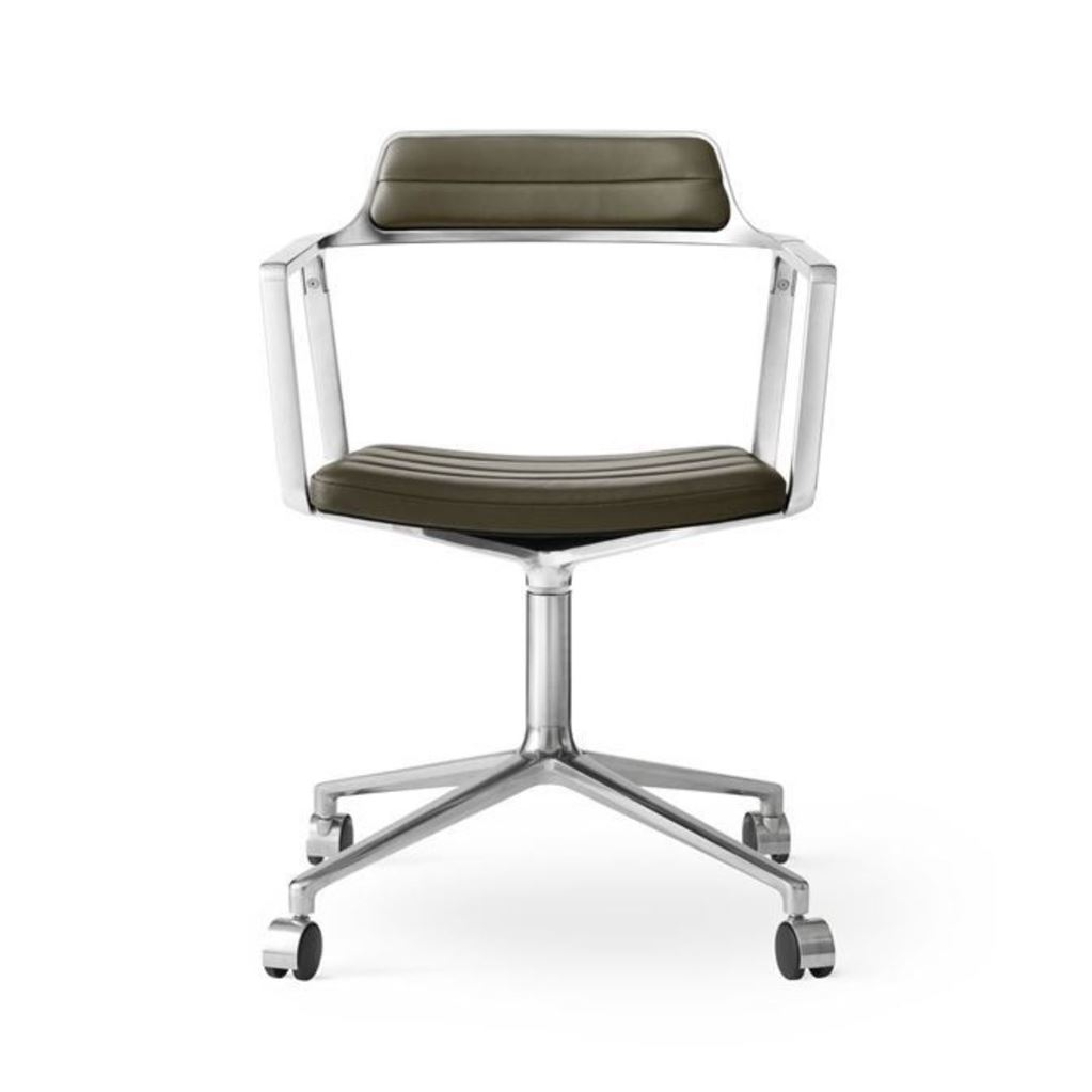 Vipp 452 Swivel Stol m. Hjul - Aluminium/Bosco Green Leather